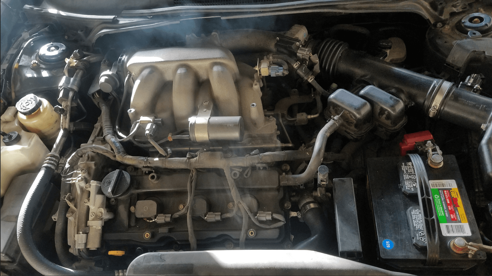 This is how much it smokes and I don't see the fluids dropping past their levels although my coolant resevoir is filled over by a little.