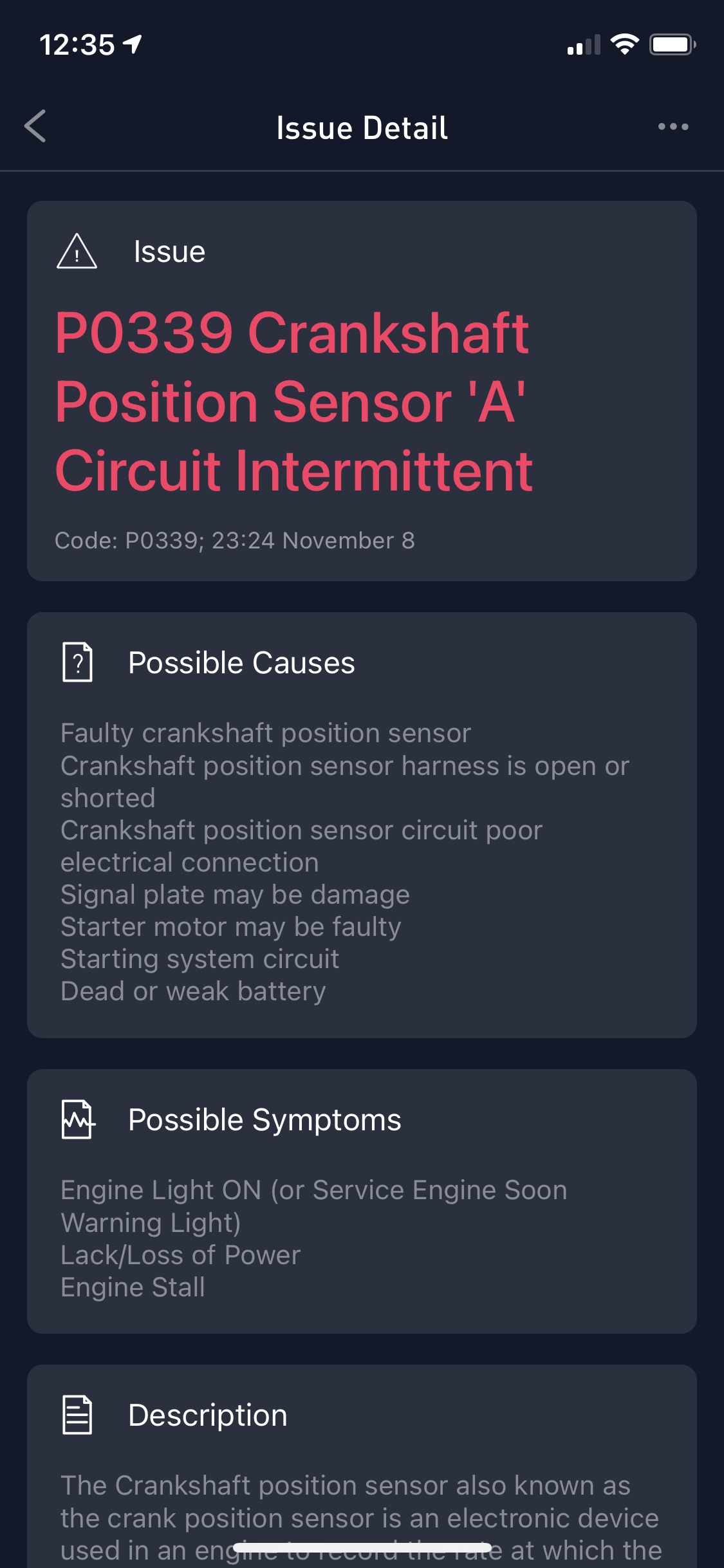 My Honda Accord 2009 is an automatic transmission that has 148788 miles and I’m constantly getting an P0339 Crankshaft position sensor ’A’ circuit intermittent code and I done changed it 3 times now what else could be causing this code to come back