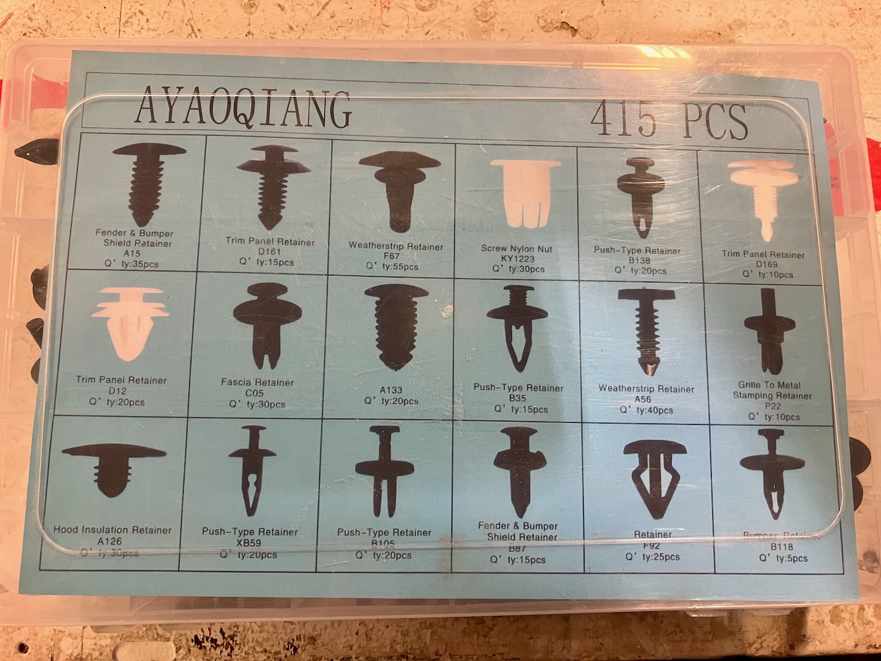 My household's 2004 Mazda B2300 is missing a screw or whatever that's related to the fuse box cover kick panel. I tried using a screw of the kind seen in this eBay listing, but it didn't work out. Um, is a screw actually supposed to go in the hole? For the record, the Mazda B2300 in question has an automatic transmission. Last I checked, it had either 90,199 miles or 90,999 miles on the odometer. I do admit that the fuse box kick cover kick panel is currently off, but I have a feeling that neither this panel nor this other panel is quite the right one for my household's B2300. Yes, the 2004 Mazda B2300 is essentially a Ford Ranger. To see relevant photos I took, check out this link: